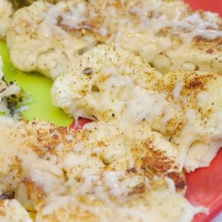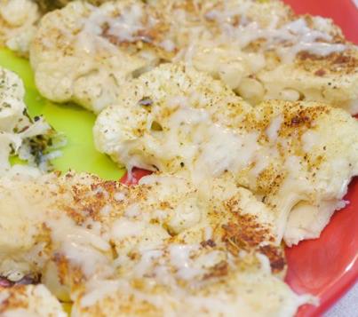 Preheat oven to 400°. Slice Cauliflower into slabs ½” thick. Lay the pieces flat on a cookie sheet and brush them with the Roasted Garlic Infused Oil. Sprinkle with Seasoned Salt, to taste and the Wahoo Chili. Place on the center rack in the oven and roast for 15 minutes. Sprinkle with cheese and bake for an additional 5 minutes.