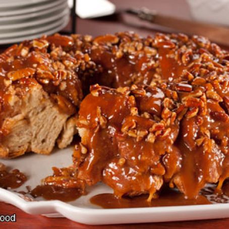 Pecan caramel monkey bread is sticky and delicious! Grab a napkin and dig in! Start with refrigerated buttermilk biscuits to make it easy.