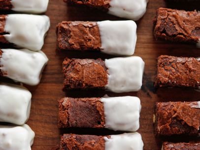 Allow the brownies to cool completely. Cut into 1-by-2-inch fingers and place on a rack over a baking sheet.