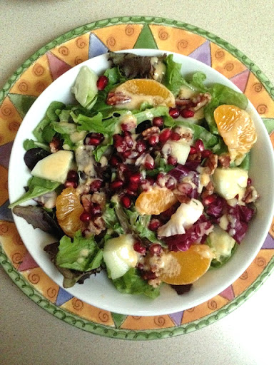 Note: You can replace the pomegranate arils with dried cranberries and use crunchy apple chunks (Opals are great!) in place of the mandarin orange.