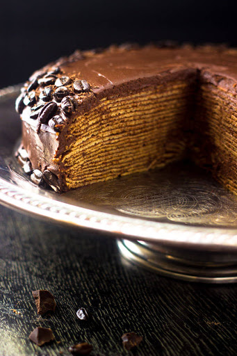 CREPE CAKE WITH BAILEYS COFFEE CREAMER CHOCOLATE GANACHE