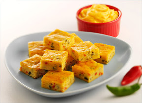 A recipe with kick, these cheese and egg-baked squares are the perfect sharing recipe for a potluck or brunch spread.