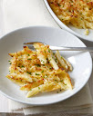 Add the white sauce to the pasta and toss to coat. Transfer the mixture to a buttered 9-by13-inch gratin dish. Sprinkle the cheese all over the top and bake for about 10 minutes, or until bubbling around the edges. Turn on the broiler and broil, rotating the dish, until the cheese is golden, 2 to 3 minutes. Let the gratin stand for 5 minutes, then season generously with white pepper, garnish with the chives and serve.