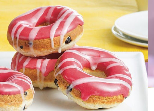 1 Heat oven to 425°F. Spray doughnut pan with cooking spray. In medium bowl, stir Bisquick mix, 2 tablespoons of the granulated sugar, 2/3 cup milk, 2 teaspoons of the vanilla and the egg until blended. Stir in blueberries. Spoon batter into resealable food-storage plastic bag; seal bag. Cut off small corner of bag; squeeze bag to pipe batter into pan, using about 1/4 cup for each doughnut.