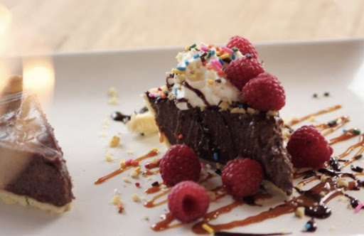 To serve: Drizzle slices with caramel or chocolate sauce, top with raspberries and whipped cream.