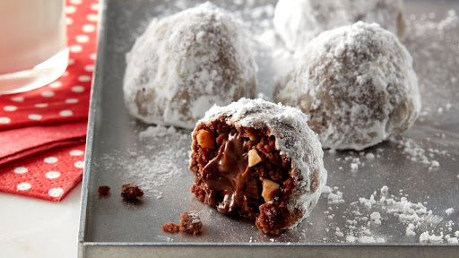 Shape dough into sixty 3/4-inch balls; wrap each around 1 milk chocolate candy. Place 2 inches apart on ungreased cookie sheet.