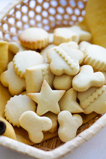 Preheat oven to 350 degree Fahrenheit. Line two baking sheets with parchment paper. Roll the dough to 1/4 inch thick. Cut into rounds or whatever shapes you wish using cookie cutters. Place the cookies on the prepared baking sheets and place in the refrigerator for about 15 minutes. This will firm up the dough so the cookies will maintain their shape when baked.