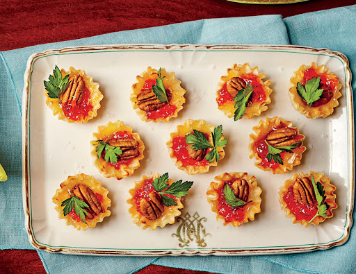 Preheat oven to 350°F. Arrange pastry shells on a rimmed baking sheet. Cut Brie into 24 very small pieces. Spoon 1/4 teaspoon jelly into each shell; top evenly with Brie pieces and pecans. Bake in preheated oven until cheese is melted, 7 to 8 minutes. Sprinkle with salt; serve immediately.