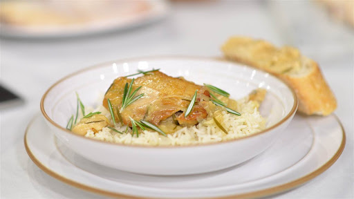 Serve with rice or potatoes, your favorite vegetable and toasted country-style crusty bread to soak up the juices.