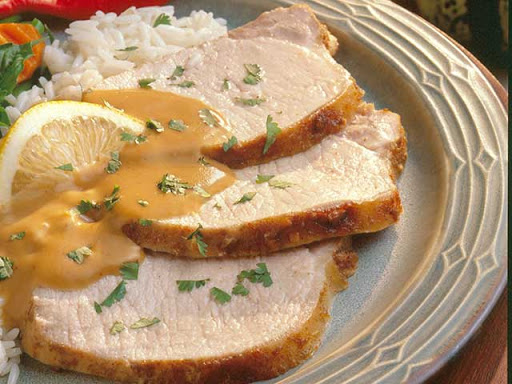 Remove pork from slow cooker and slice. Stir peanut butter into juices in cooker until smooth. Spoon peanut butter mixture over sliced pork.