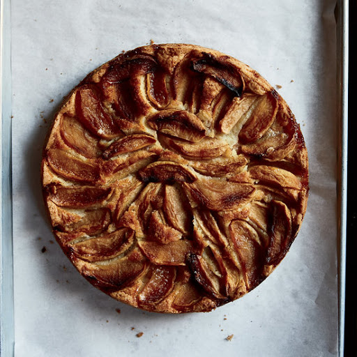 4. Arrange the remaining apples in slightly overlapping concentric circles on the batter and drizzle on the apple juices. Bake for about 1 hour and 40 minutes, until a cake tester inserted in the center comes out clean.