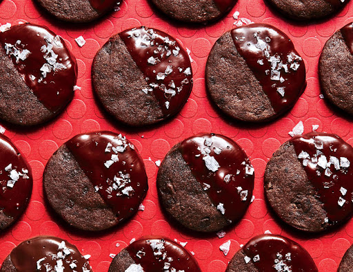 Dip half of top side of each cookie in melted chocolate. Sprinkle lightly with sea salt or chopped toasted pecans, if desired. Place cookies on a parchment paper-lined baking sheet, and chill just until chocolate sets, about 15 minutes. Layer cookies between wax paper, and store in an airtight container at room temperature up to 5 days.