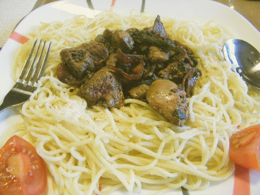 Add chicken livers and fry, stirring frequently, for about 3 minutes.