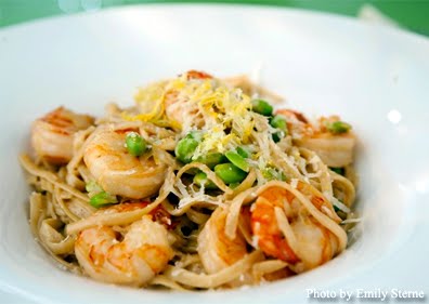 Add lemon zest and juice and cream and bring to a simmer, then add desired amount of cheese, white pepper and pasta. Toss well until heated through.