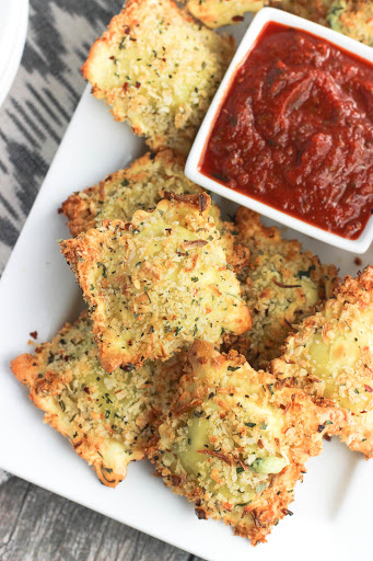 Bake for 15-20 minutes, or until ravioli are golden brown and crisp. Remove and let ravioli cool for a minute or two before serving with warm marinara sauce (or your desired sauce).