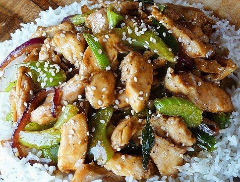 Serve over prepared Basmati or Jasmine Rice. Garnish with sesame seeds and additional sliced green onions as desired.
