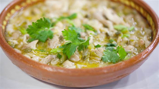 5. Bring heat to medium, add remaining 2 tablespoons vegetable oil. Add the onions, celery, green bell peppers, poblano peppers and remaining 1 teaspoon salt, sweat until tender. Add in the minced garlic, minced jalapenos, cumin, cayenne and tomatillos, reduce heat. Shred the chicken and fold into the chili. Allow to simmer until the tomatillos break down a little and chicken is very tender, about 30 minutes.