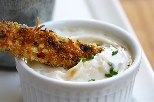 Zucchini Fries with Roasted Garlic Aioli and Sriracha Mayo