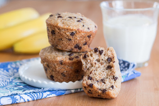 BANANA CHOCOLATE CHIP MUFFINS (WHOLE WHEAT FLOUR)