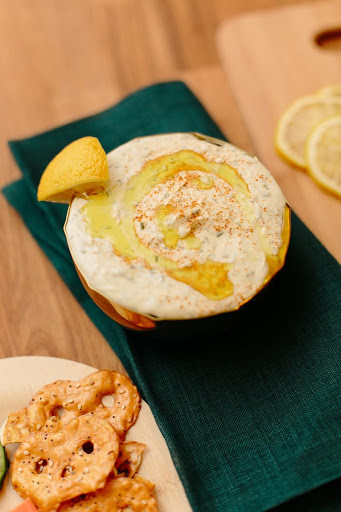 When the cheese is whipped and and very smooth add the lemon zest, chives, salt, and a generous quantity of black pepper. Blend to combine then transfer to a serving dish and drizzle lightly with olive oil. Dust lightly with ground sumac or cayenne, if desired.