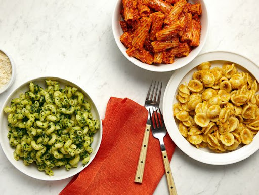4. Sun-Dried Tomato Puree 2 cups each fresh basil and parsley, 1/3 cup each toasted pine nuts and chopped sun-dried tomatoes (not oil-packed), 1 garlic clove and 1/2 teaspoon each grated lemon zest, red pepper flakes and kosher salt. With the machine running, gradually add 1/2 cup olive oil. Stir in 1/2 cup grated Parmesan.