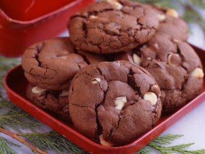Line a baking sheet with parchment paper. Form dough into balls, about 2 inches or 1 1/2 ounces each, and put on the prepared baking sheets, leaving a couple inches between the cookies. Bake until outside is crackly, but the center is still moist, about 13 to 15 minutes, or 12 in convection. Cool on a rack.