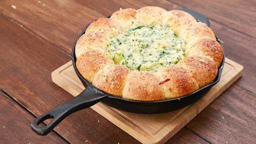 Mix together all the cheeses, spinach, artichoke, garlic, chilli flakes and salt. Spoon into the middle of your dish in a big pile.