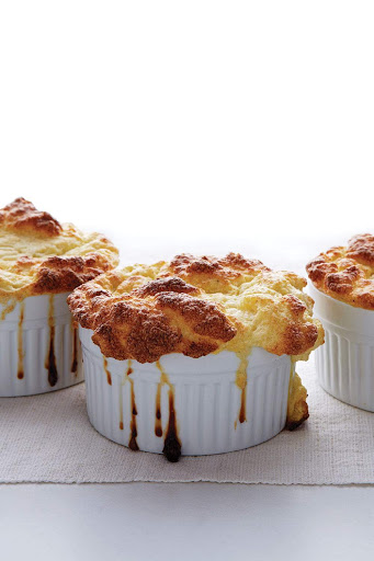 Heat oven to 375°. Grease four 8-oz. ramekins with butter and coat with parmesan; place on a baking sheet and chill. Cook cauliflower in salted boiling water until tender, 4–6 minutes. Drain and transfer to a food processor. Add goat cheese, nutmeg, 3 eggs, salt, and pepper; purée until smooth. Transfer to a large bowl; chill until ready to use. Whip egg whites into stiff peaks in a bowl; in batches, fold whites into cauliflower purée and divide between prepared ramekins. Bake until golden and puffed, about 30 minutes.