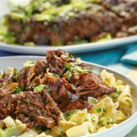 7. Transfer to a heated platter spoon the remaining sauce from the pan over the meat. Garnish with chopped parsley and celery leaves. Serve immediately with seasoned egg noodles.