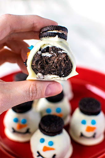 Keep melting snowmen cookie balls refrigerated until ready to eat.