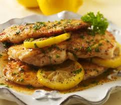 Sauté onions, garlic and olive oil. Remove and set aside. Pound chicken flat between wax paper. Mix flour, paprika, salt and pepper in a flat bowl. Dip chicken and cook in butter until lightly brown on either side (2 to 3 min.). Add sauté onion garlic and olive oil. Over high heat add lemon juice, sherry and caper. Should thicken a little (if too much add more sherry to thin). garnish with lemon slices and parsley.