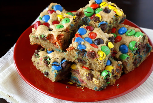 In a large bowl, whisk the melted butter and sugars until combined. Add the egg, egg yolk, and vanilla and mix well. Using a rubber spatula, fold the dry ingredients into the egg mixture until just combined; do not overmix. Fold in 1 cup of M&M's and turn the batter into the prepared pan, smoothing the top with the spatula. Sprinkle remaining M&M's on top and press in slightly.