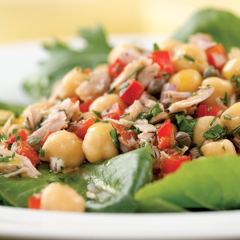 - 2 1(5-ounce) cans garbanzo beans, rinsed & drained