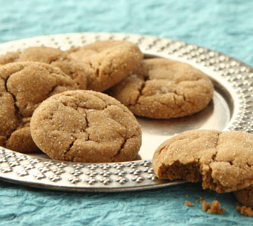 In a medium mixing bowl, whisk together first 8 ingredients; set aside. In a large mixing bowl, cream butter and sugars with an electric mixer until smooth and light. Add egg and vanilla; beat until well combined. Add molasses; beat until well combined. Add dry ingredients; beat on low speed just until you can no longer see flour. Using your hands, roll 24 evenly sized balls (about 1 ½"); roll balls in sugar. Place 2" apart on 2 parchment-lined baking sheets. Bake in a preheated 375° oven until just barely set and puffy (10-11 min.), turning and switching pans halfway through; cool on pan 5 min. Cool completely on wire racks. Store in an airtight container at room temperature up to 1 week.