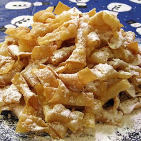 This really is a pretty simple recipe. It’s really just sweet pasta that you fry then sprinkle with powdered sugar. But very delicious!!!