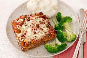 BAKE 45 min.; top with cheese. Bake, uncovered, 10 min. or until meatloaf is done (160ºF).