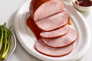 TRANSFER ham to carving board; slice. Serve topped with sauce.