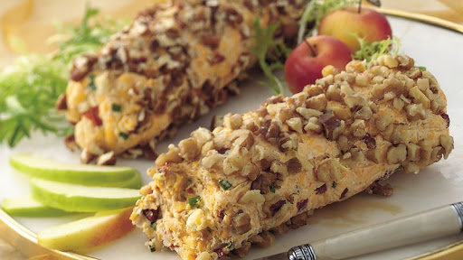 2 Divide cheese mixture in half. Shape each half into a log. Roll logs in walnuts. Wrap each log separately in plastic wrap or waxed paper. Refrigerate about 2 hours or until firm.