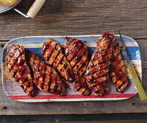 Grill the chicken without moving it until grill marks form, 3 to 4 minutes. Flip and grill for another 3 to 4 minutes. Brush the top side with barbecue sauce, flip, and brush more on the second side. Grill until just cooked through (160°F), another 2 to 4 minutes. Let rest for a few minutes before serving.