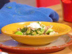 Stir in shredded chicken. Season with salt and pepper. Serve with toppings on the side.