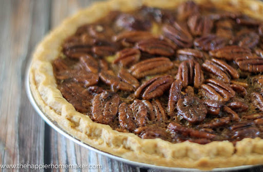 - Filling: 4 eggs, 1 cup pecan halves, 1 1/4 cups granulated sugar, 1/4 cup butter or margarine, 1/2 cup light corn syrup