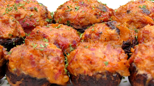 Fill each mushroom cap with the filling, pressing down firmly to pack it into the mushroom