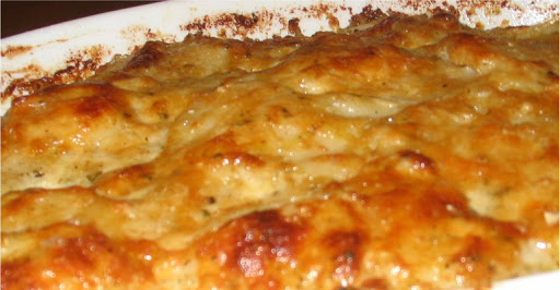 Layer ½ of potatoes into prepared dish. Top with onions.