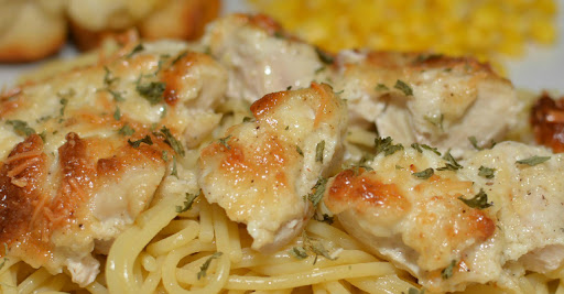 Remove from oven and serve chicken over rice, pasta, or by itself! Enjoy!!