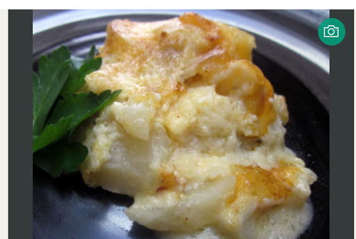 Remove from oven, cool a bit and peel. Slice the peeled potatoes into about half inch slices and set aside.