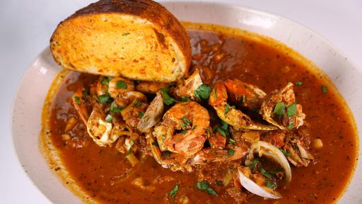 Add the crabs to the sauce and simmer for 25 minutes. Add the clams and simmer for 5 minutes. Add the fish and shrimp and cook 4 to 5 minutes or until the shrimp turn pink. Do not stir.