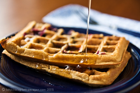 Fat-free waffles are softer and less crispy than traditional waffles, but if you want them crispier, simply pop the cooked waffles into the toaster for a minute or two. This is also a great way to reheat leftovers