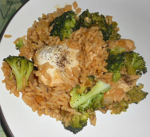 There aren’t too many ingredients in this dish and I had most of them on hand. I love the flavor of this meal. The jalapenos give it some heat and the soy sauce and chicken broth really cook flavor into the rice and broccoli. The chicken becomes tender while cooking under the lid. I served it with eggrolls which made for a complete meal.