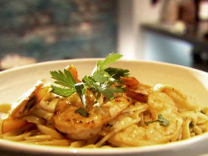 Meanwhile, in a large skillet, melt 2 tablespoons butter in 2 tablespoons olive oil over medium-high heat. Saute the shallots, garlic, and red pepper flakes (if using) until the shallots are translucent, about 3 to 4 minutes. Season the shrimp with salt and pepper; add them to the pan and cook until they have turned pink, about 2 to 3 minutes. Remove the shrimp from the pan; set aside and keep warm. Add wine and lemon juice and bring to a boil. Add 2 tablespoons butter and 2 tablespoons oil. When the butter has melted, return the shrimp to the pan along with the parsley and cooked pasta and reserved pasta water. Stir well and season with salt and pepper. Drizzle over a bit more olive oil and serve immediately.