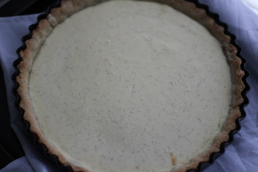 Mix all ingredients until smooth. You can use an electric mixer or a blender. Pour into pre-baked/cooled tart and bake for 15-20 minutes, or until center is set.